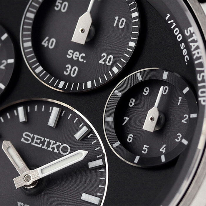 【SEIKO 精工】SFJ003P1 四眼計時 藍寶石鏡面 太陽能 鋼錶帶男錶 8A50-00A0D 黑/銀 42mm