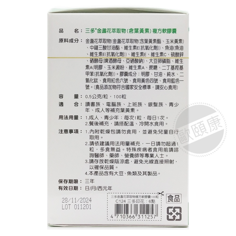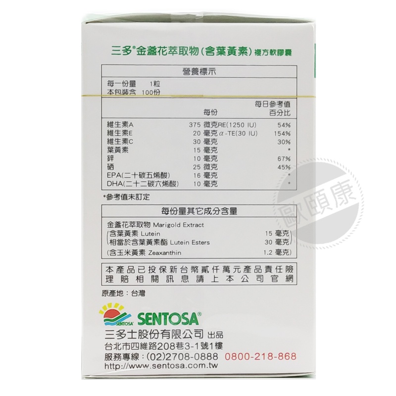 【SENTOSA 三多】三多 葉黃素複方軟膠囊100粒 金盞花萃取物 ◆歐頤康◆