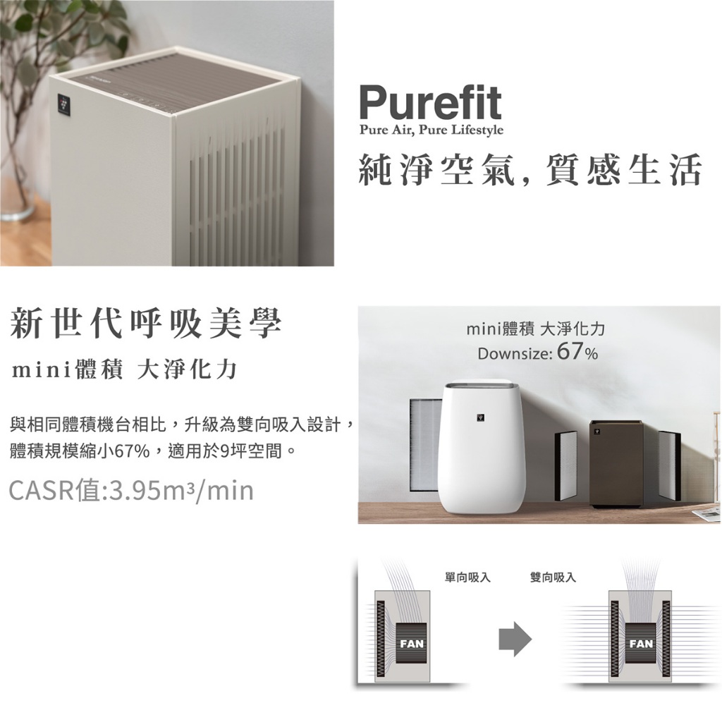 【SHARP夏普】9坪 Purefit空氣美學機|迷你方空氣清淨機 FU-S40T-W 小麥白