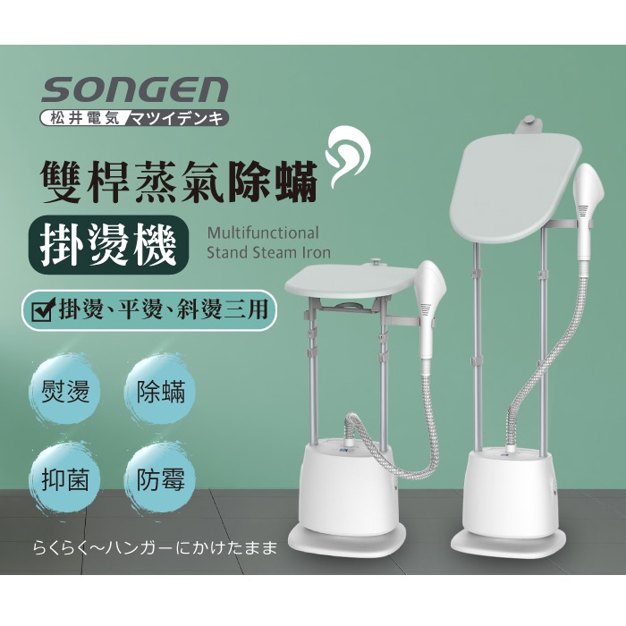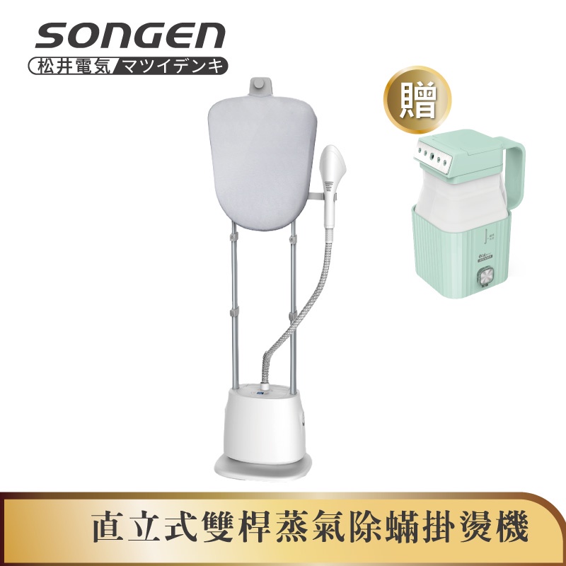 【SONGEN松井】直立式雙桿蒸氣除蟎掛燙機/電熨斗(SG-QY66E加贈摺疊小方塊旅行手持掛燙機)