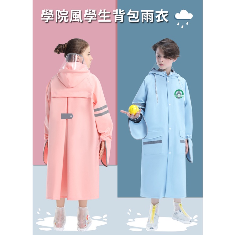 【優貝選】學院風馬卡龍色系加大書包位置兒童雨衣 小學生雨衣