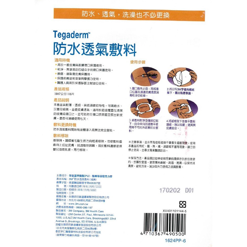 【SW居家】3M 防水透氣敷料 1624PP 6P 中/小傷口專用