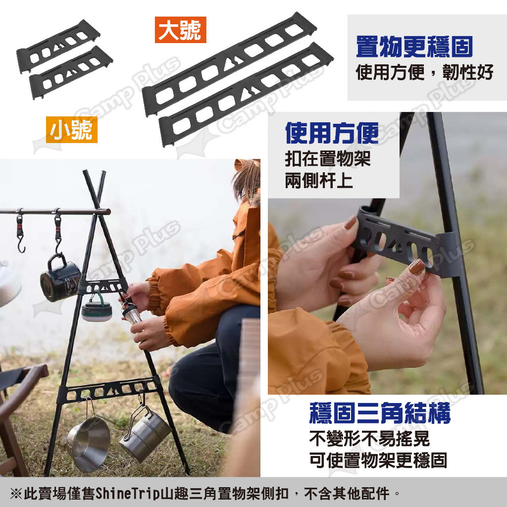 【Shine Trip】山趣 三角置物架側扣 2支入 小號/大號 三角架側邊扣 三角架配件側邊橫桿 吊掛 露營 悠遊戶外