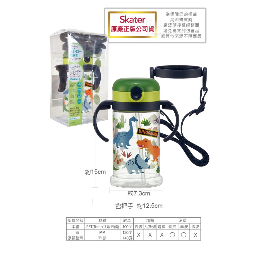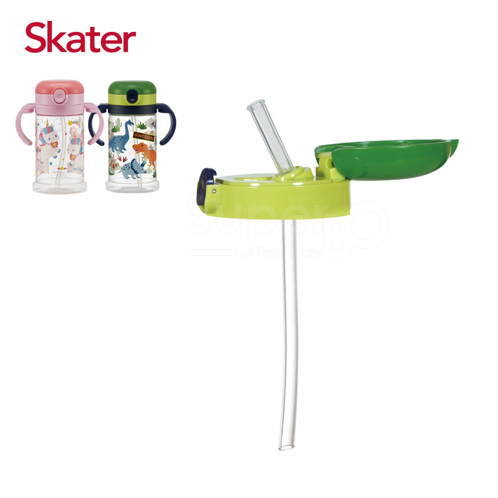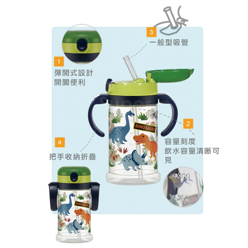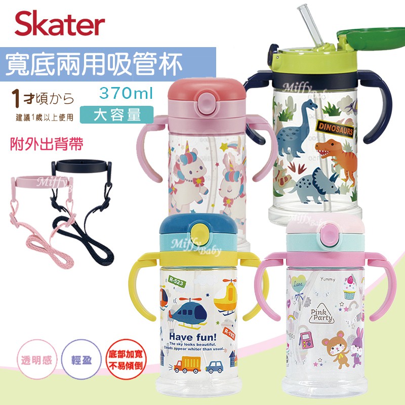 【Skater】寬底兩用吸管杯370ml(�附把手+背帶) 恐龍 直升機 替換配件 替換吸管-miffybaby