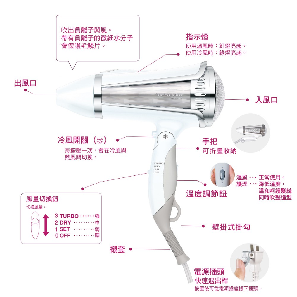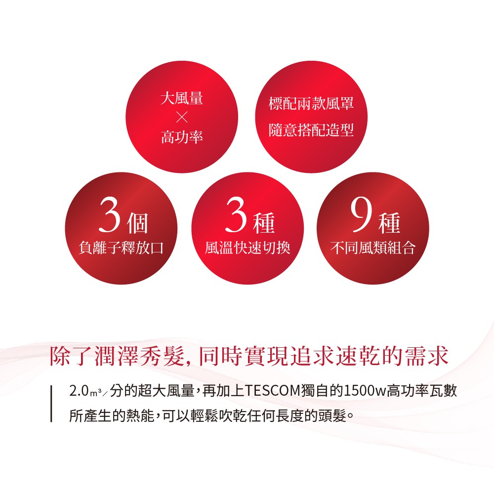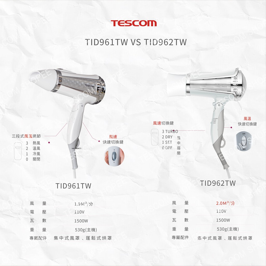 【TESCOM】TID962 大風量負離子吹風機 附烘罩 雙配件 長髮 髮量多 保濕 乾髮 962 原廠保固