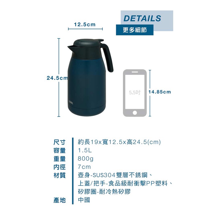 【THERMOS膳魔師】不鏽鋼 按壓式真空保溫壼1500ml (THS-1501系列)