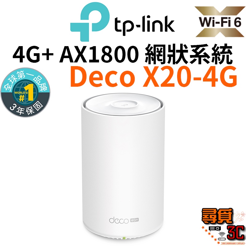 【TP-Link】Deco X20-4G AX1800 4G+ 完整家庭Mesh Wi-Fi系統 智慧網狀路由器系統