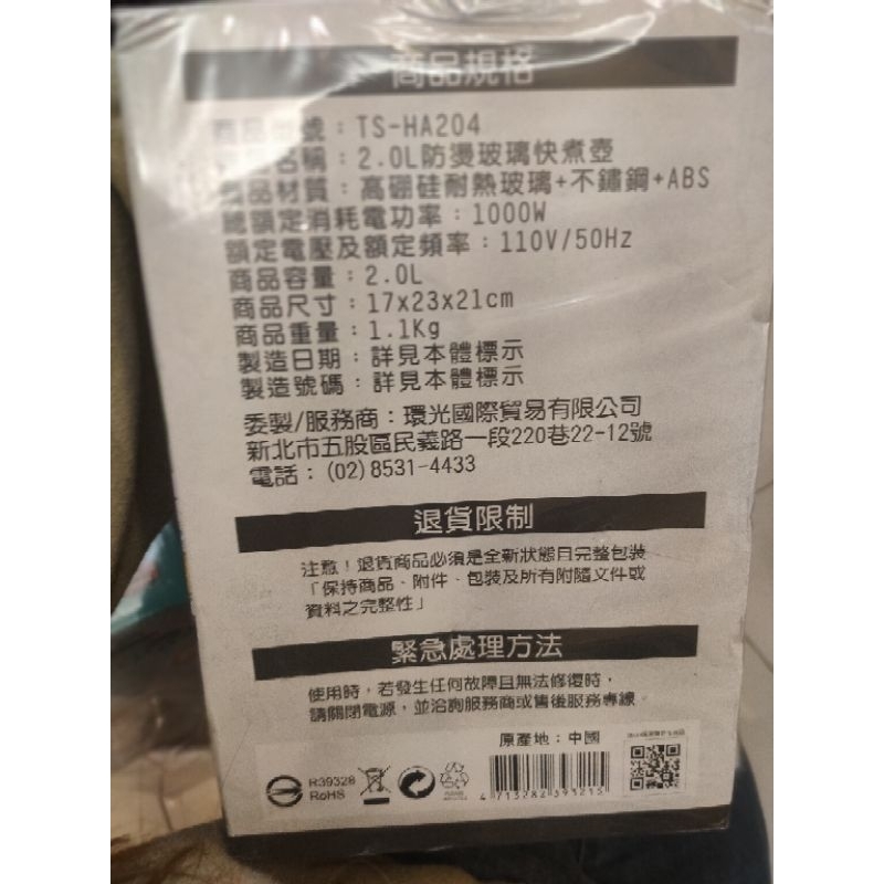 【TRISTAR】三星2L防燙玻璃快煮壺