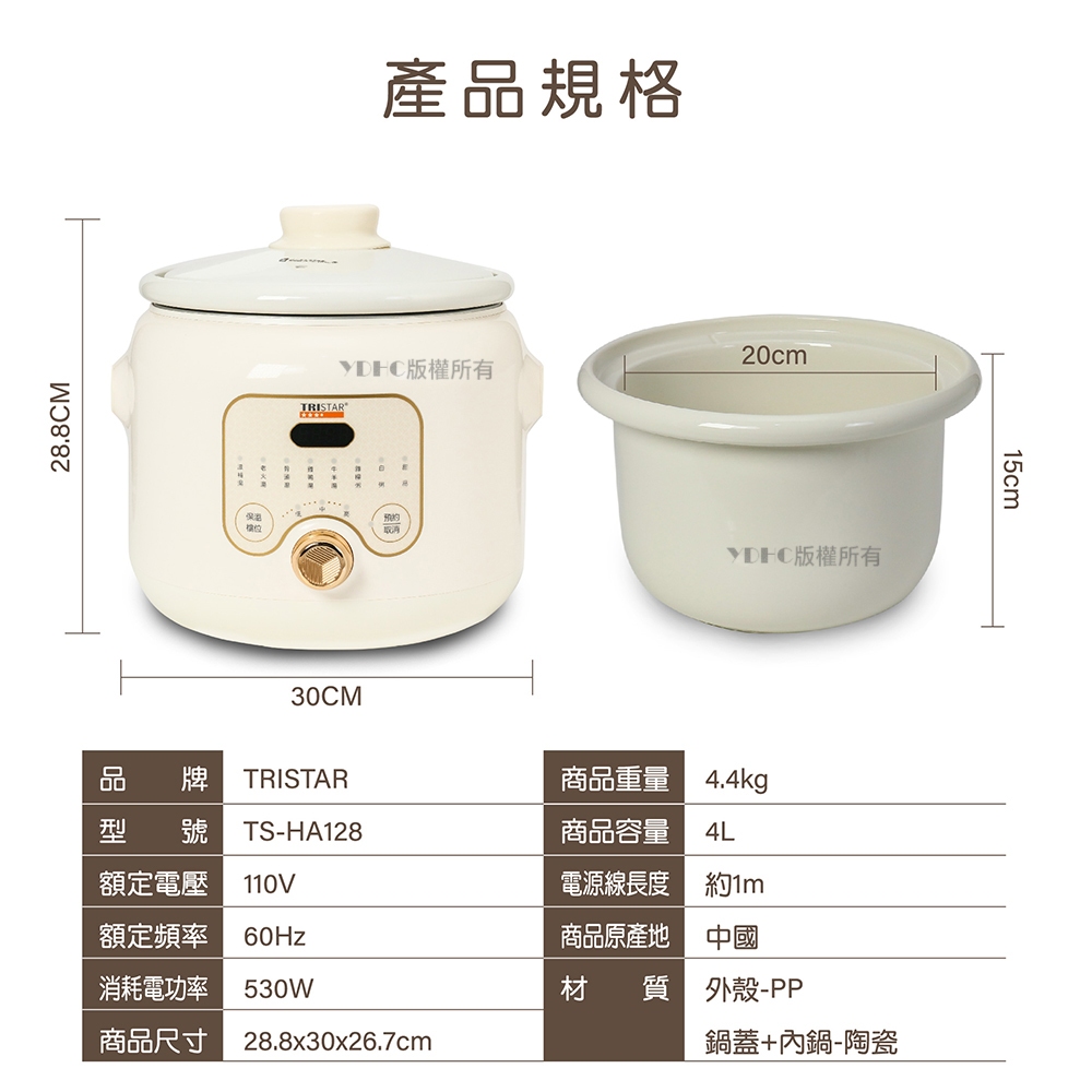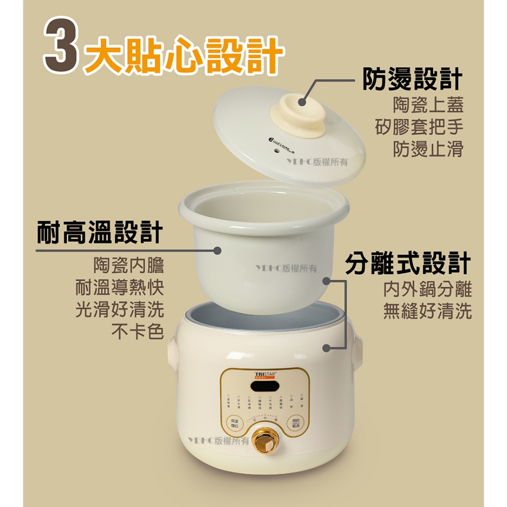 【TRISTAR三星牌】4L微電腦電燉鍋(TS-HA128)|陶瓷內鍋 分離設計
