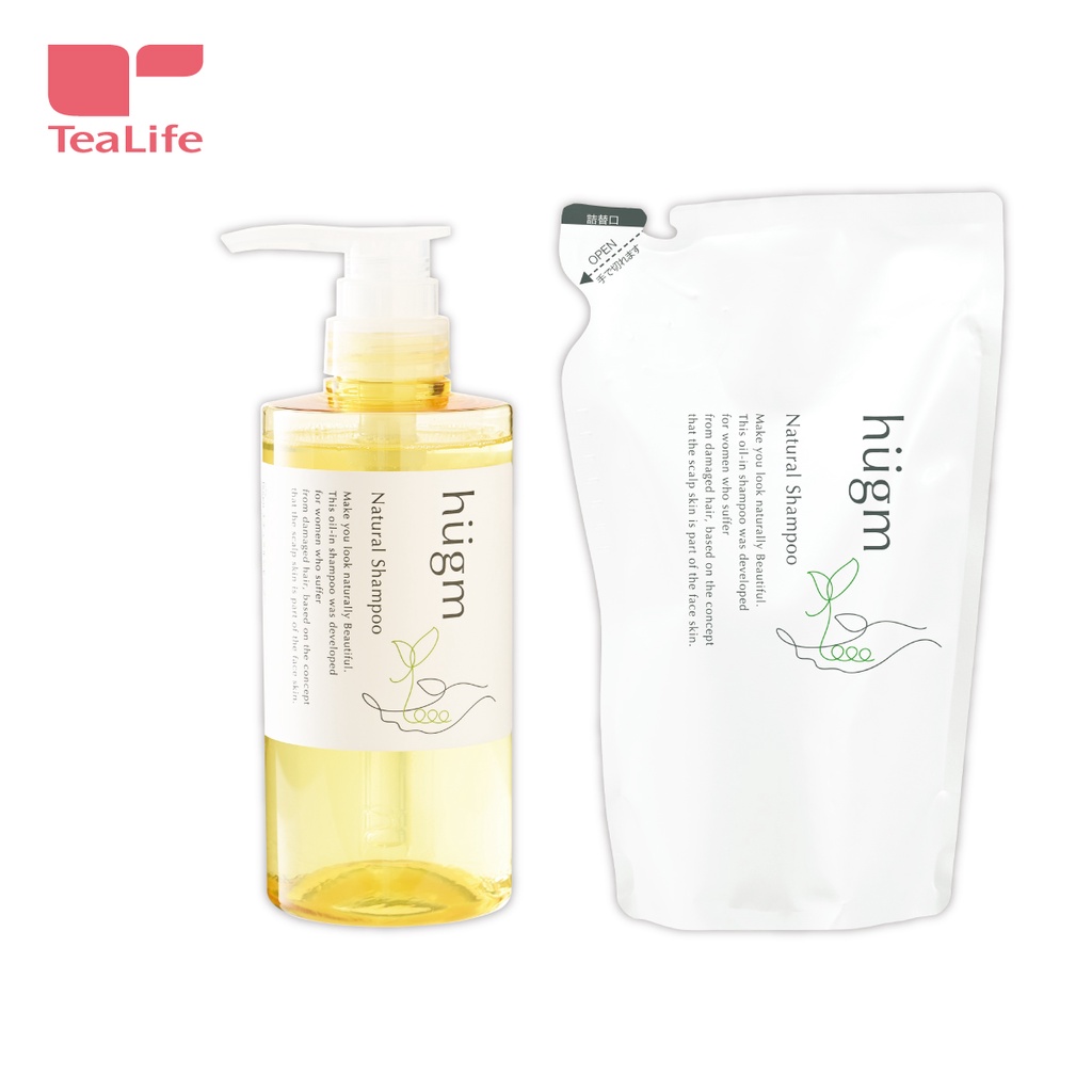 【TeaLife】提來福 日本hugm天然洗髮精+補充包 綠茶籽油 無添加 無矽靈 多效合一 洗髮乳 日本直送