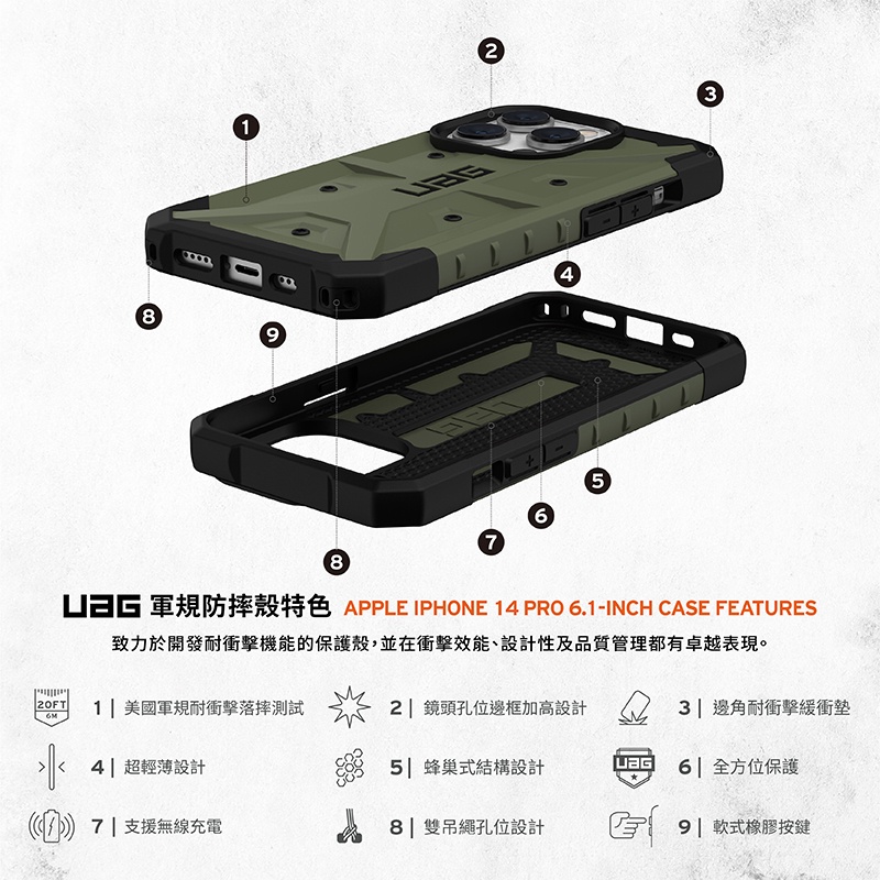 【UAG】iPhone 14Pro/Pro Max (適用6.1/6.7吋) 耐衝擊保護殼-實色款 (美國軍規 手機殼)