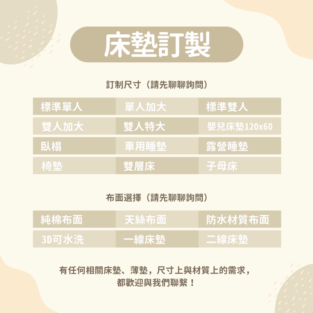 【UN#】100%天然乳膠 床墊客製專區|專業訂製/ 嬰兒床 / 雙層床 /子母床 /露營床墊 /薄床墊