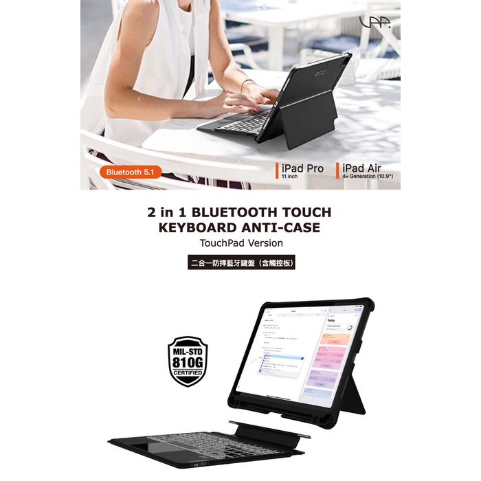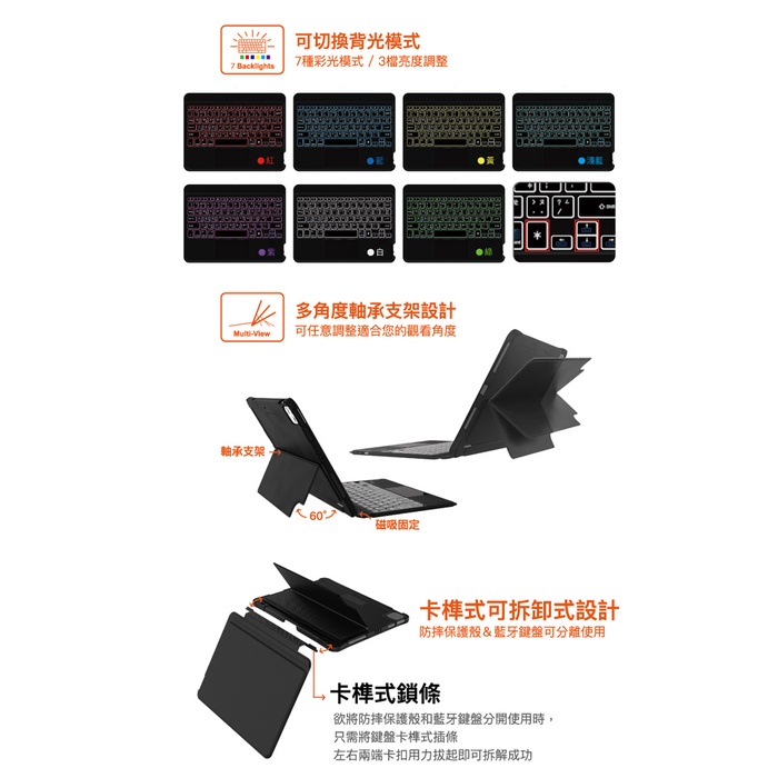快速出貨✅VAP iPad專用 藍牙鍵盤 七彩背光款+二合一防摔支架殼(含觸控板) iPad鍵盤 iPad保護殼 保護套
