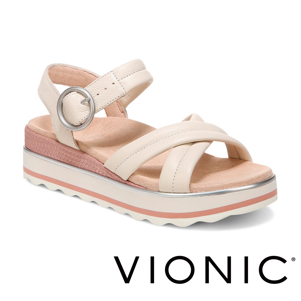 【VIONIC 法歐尼】Reyna芮娜 圓環扣飾小牛皮大波浪厚底涼鞋
