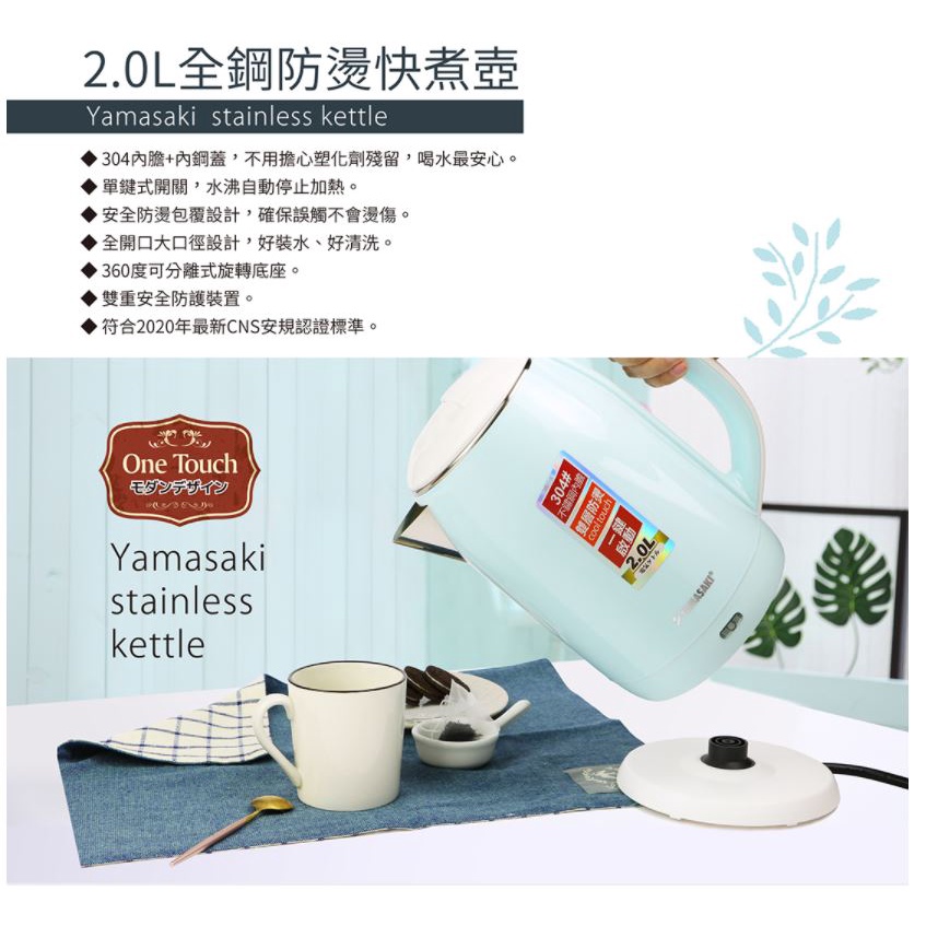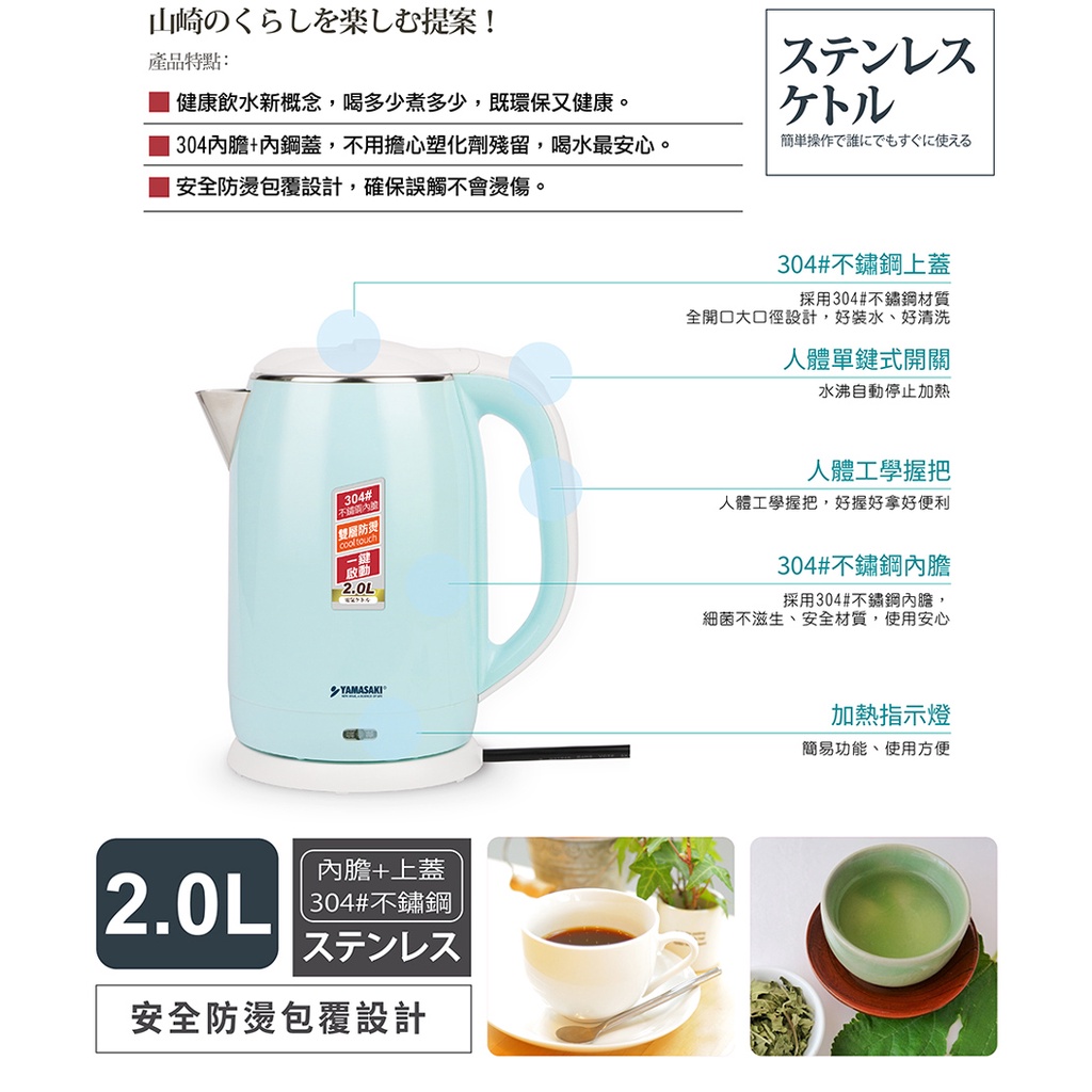 【YAMASAKI 山崎家電】2.0L全鋼防燙快煮壺SK-1830S
