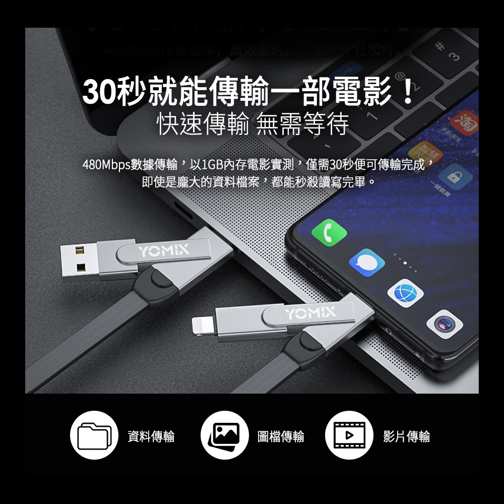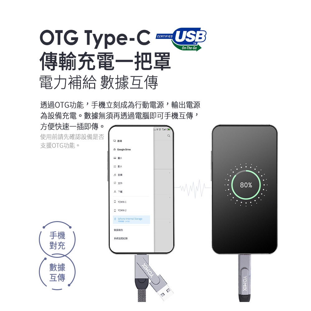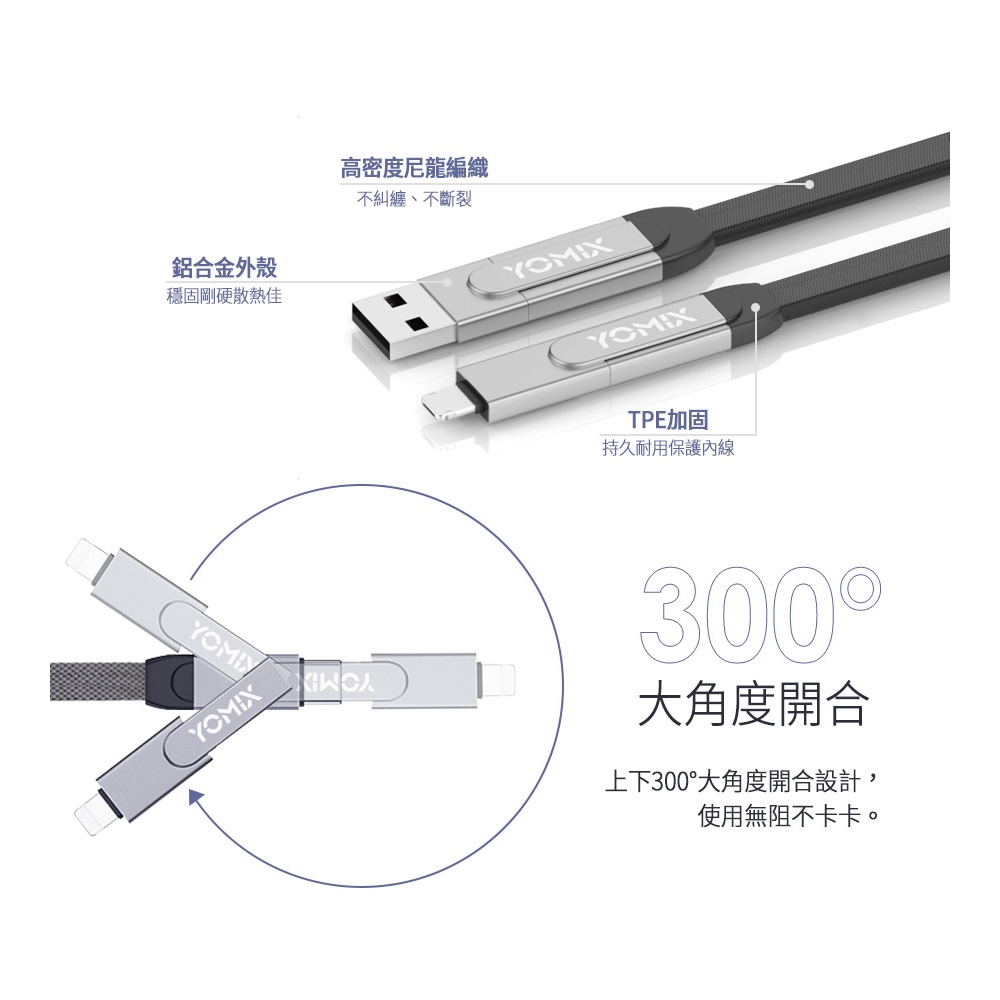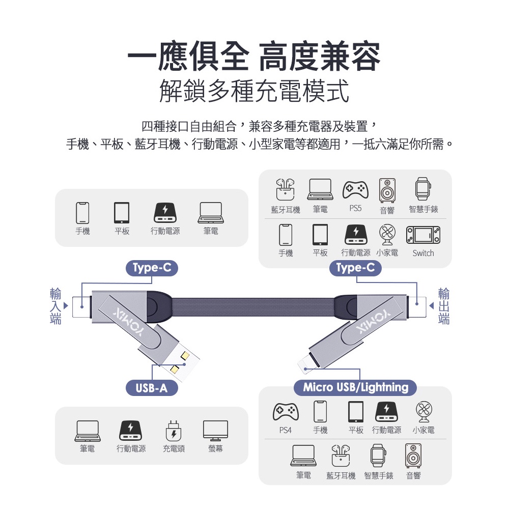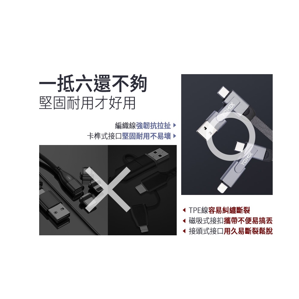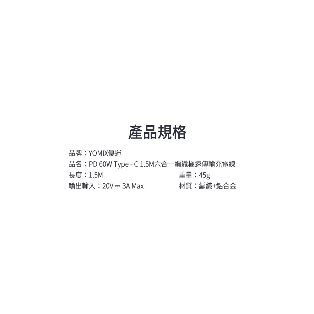 【YOMIX優迷】PD 60W Type-C 1.5M六合一編織極速傳輸充電線
