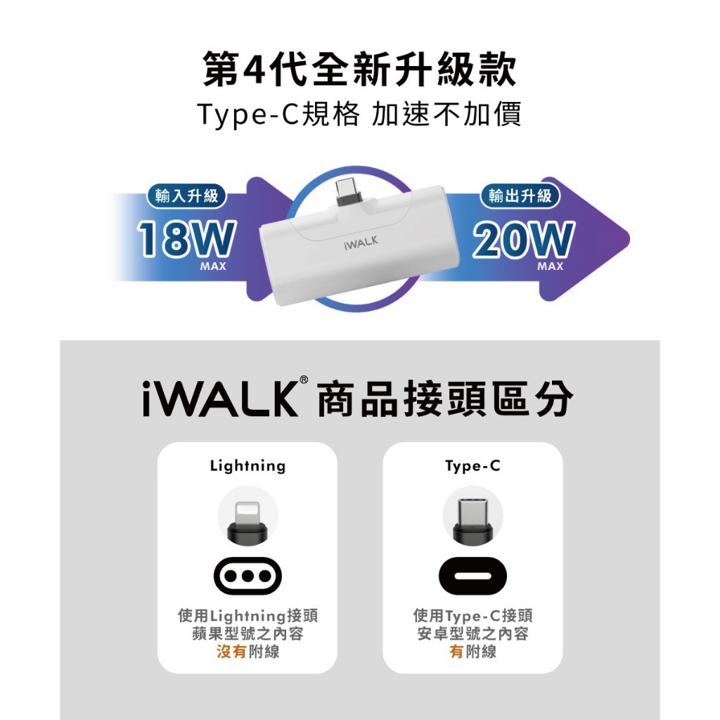 【iWALK】 四代經典款 直插式行動電源|加長版 4500mAh 行充 口袋 蘋果 Type-c i15 i16適用
