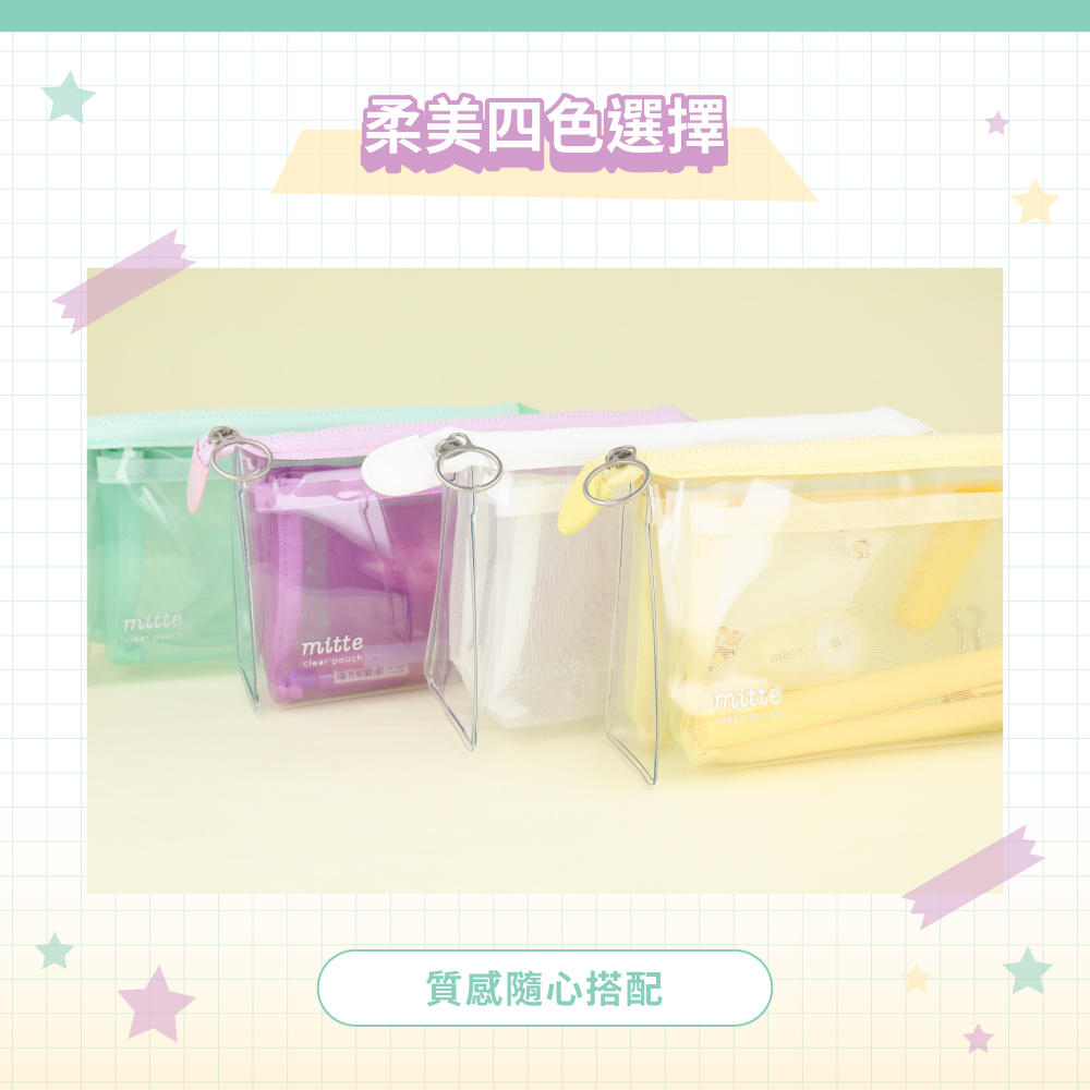 【sun-star】mitte透明網袋兩用收納筆袋 (日本進口台灣現貨) 雙層筆袋 鉛筆盒 收納包 筆盒 文具袋 收納袋