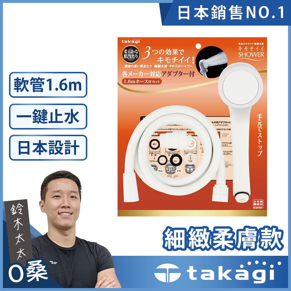 【takagi】Shower細緻柔膚蓮蓬頭+專用軟管組(一鍵止水款)