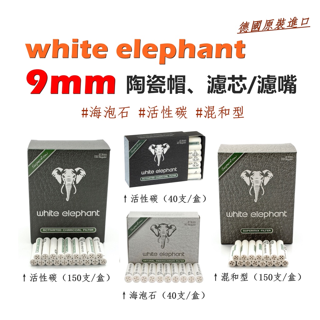 【white elephant】德國原裝進口、白象/大象、9mm、海泡石/活性碳/混和型、陶瓷帽濾芯 濾嘴 菸嘴 菸斗