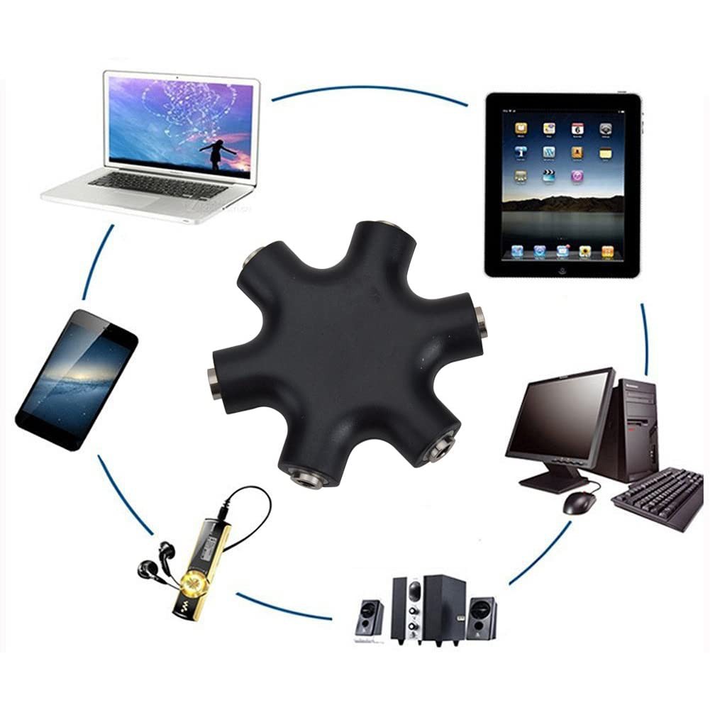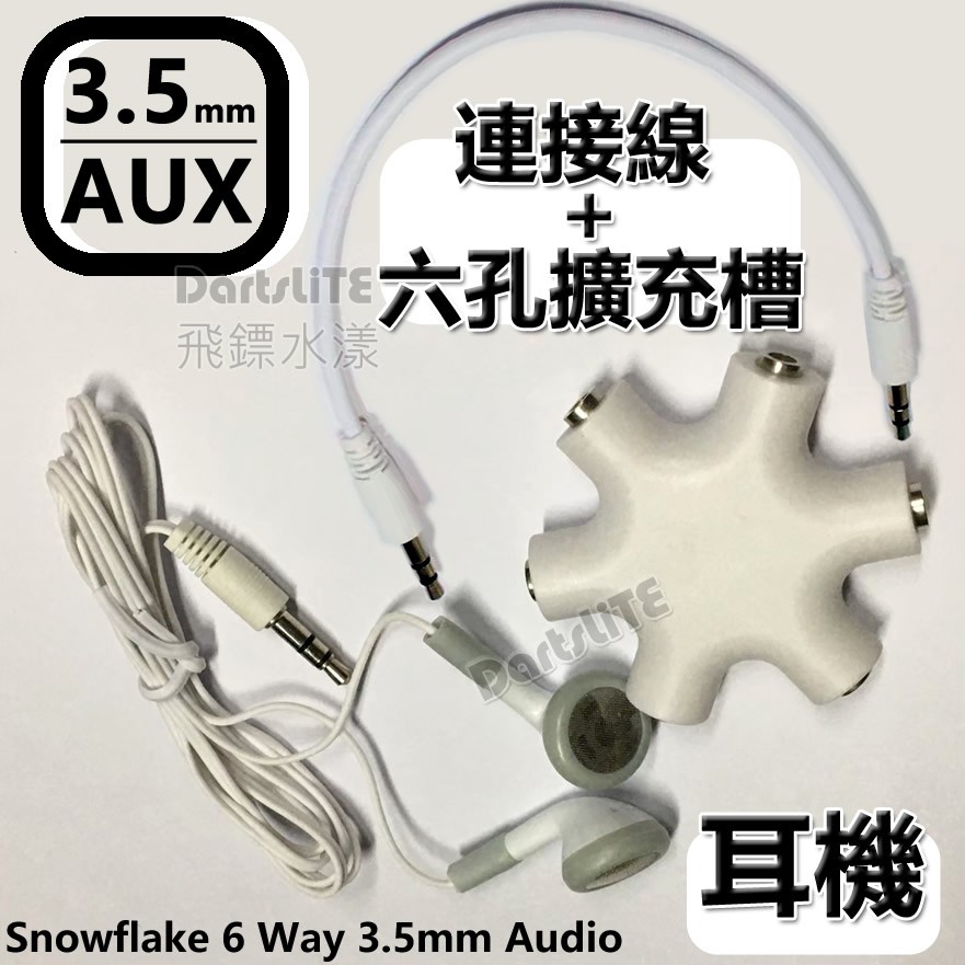 一分五3.5mm音源線分享器 AUX耳機 六孔一對五白雪花口 mp3耳機分享 iPod音源延長 混音 錄音 擴音 長生學