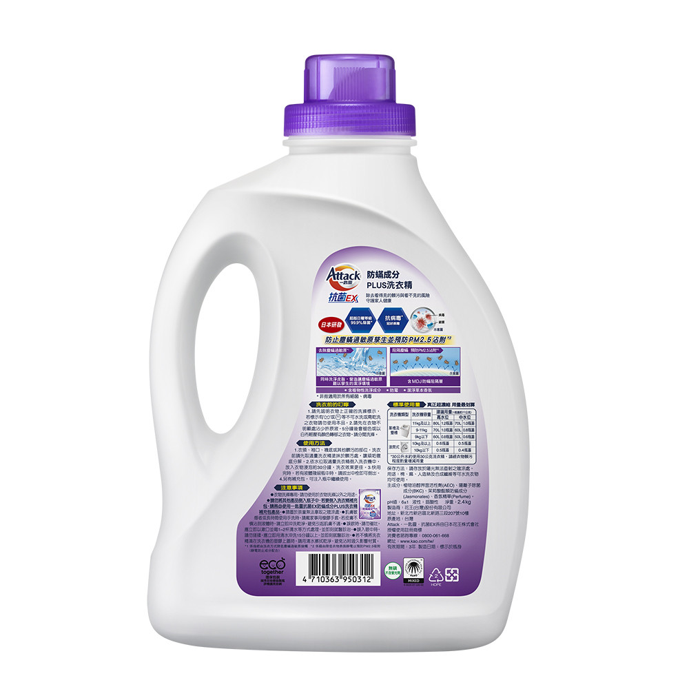 一匙靈抗菌EX防螨成分PLUS洗衣精2.4KG(包裝隨機)