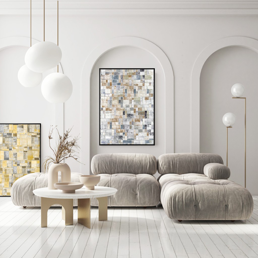 一片銀白-餐桌掛畫/臥房/複製畫/冬季/展示櫃/商空/格子/抽象畫