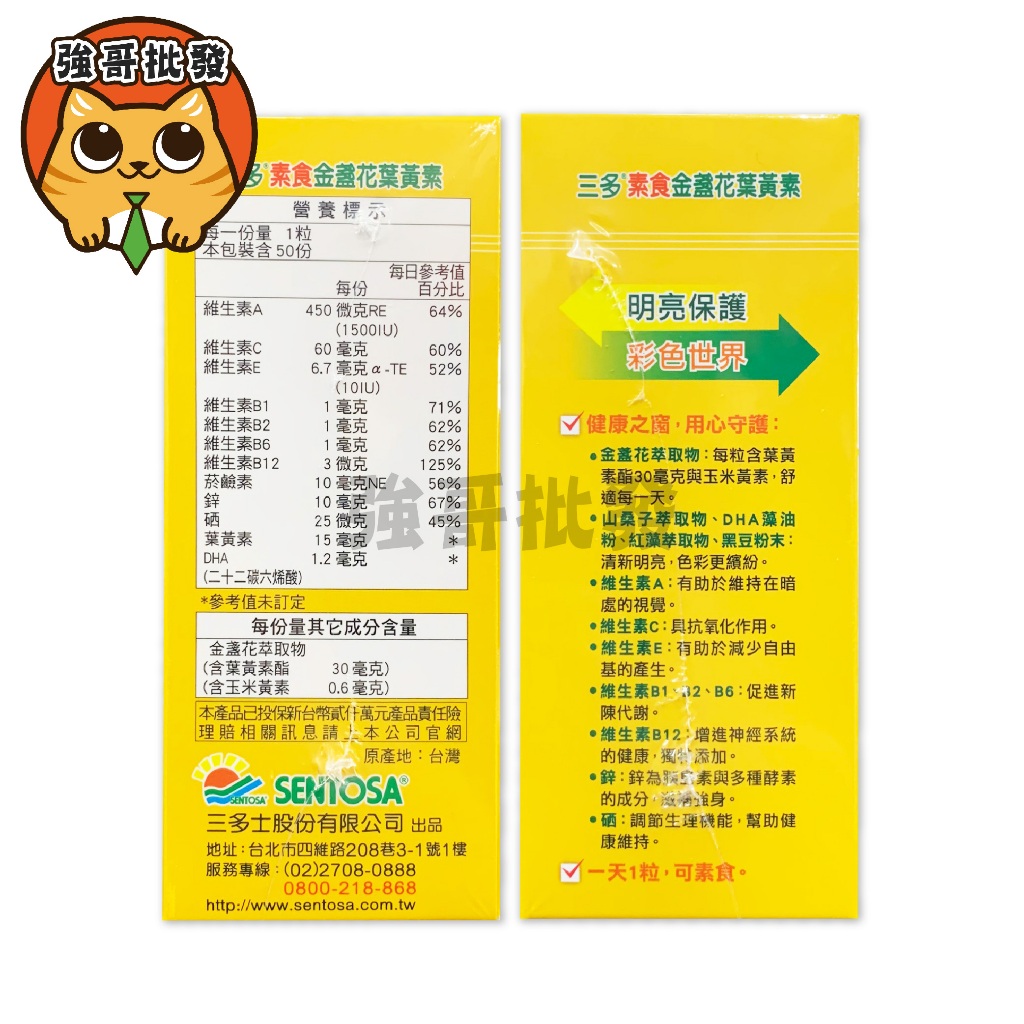 三多 素食金盞花葉黃素 植物性膠囊 50粒 公司貨有發票 快速出貨