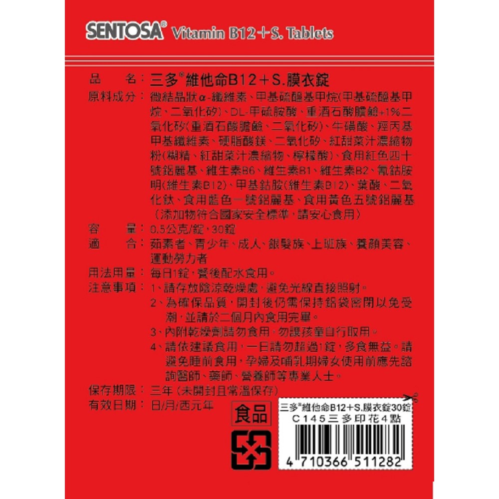 三多 維他命B12+S.膜衣錠 素寶素食 維他命D3+B12+S 30錠盒裝【醫妝世家2號館】素食可吃 全新 素寶