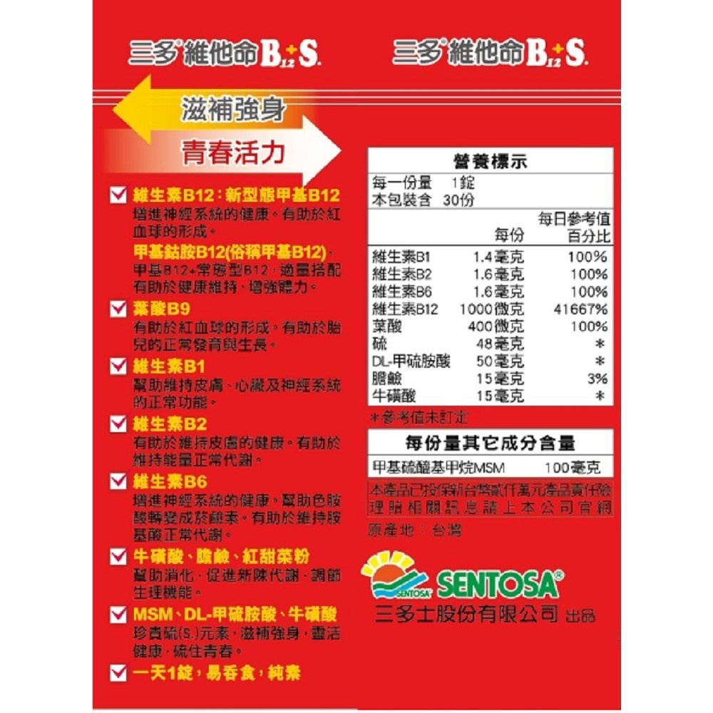 三多 維他命B12+S.膜衣錠 素寶素食 維他命D3+B12+S 30錠盒裝 素食可吃 【大生醫妍】素寶