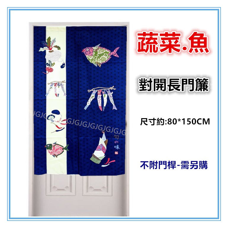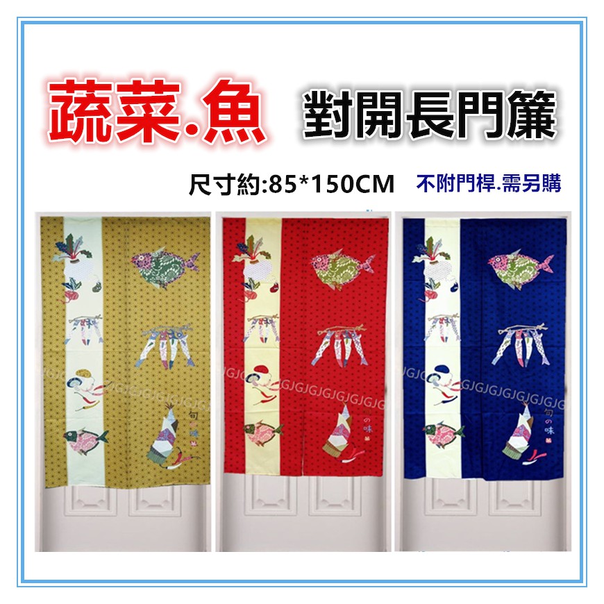 三寶家飾~f藍 蔬菜.魚門簾尺寸約85*150,年年有餘日式一片式對開麻布長門簾,櫃簾 壁簾 不附桿需另購。