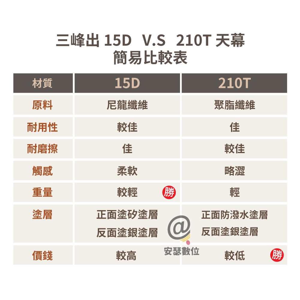 三峰出【210T 塗銀防曬天幕 附風繩/附風繩+天幕桿】輕量 銀膠抗UV 防雨 遮陽 登山 露營 烤肉 抗風 帳篷