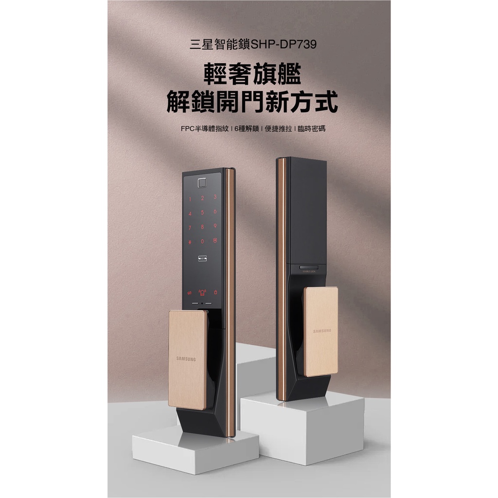 三星頂級 指紋 藍芽電子鎖 SHP-DP739 可全台到府安裝及教學