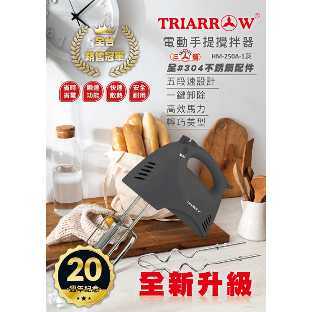 三箭牌 電動攪拌機 手提 HM-250A-1G 料理機 打蛋器 便攜式 烘焙料理 FzStore