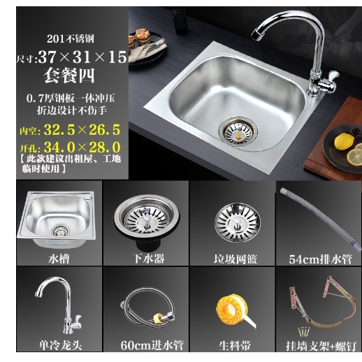 不銹鋼水槽50*40CM【台灣現貨附發票】【221】 單槽帶支架 洗手槽 廚房 洗菜盆 洗碗 洗手盆 洗臉盆 餐廳 廚房