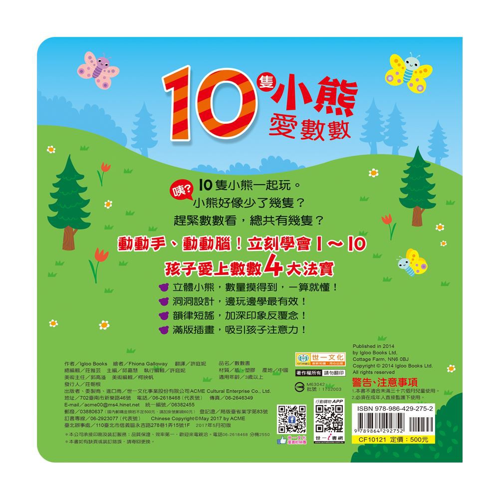 世一---立體浮凸數數書:10隻小熊愛數數【繪本&觸摸 二合一】