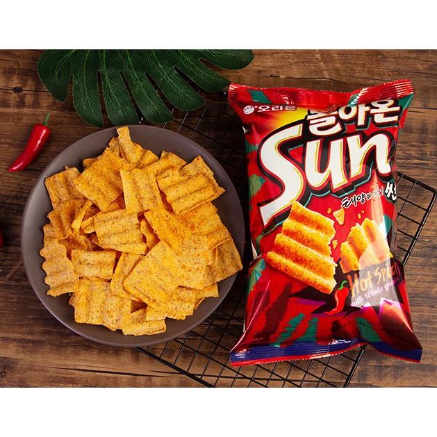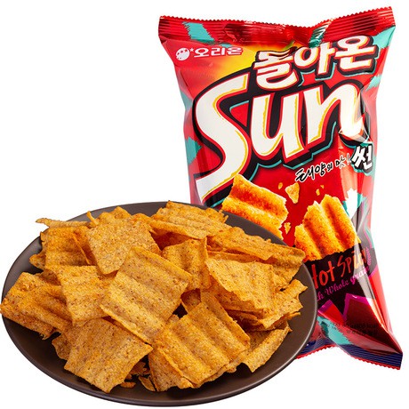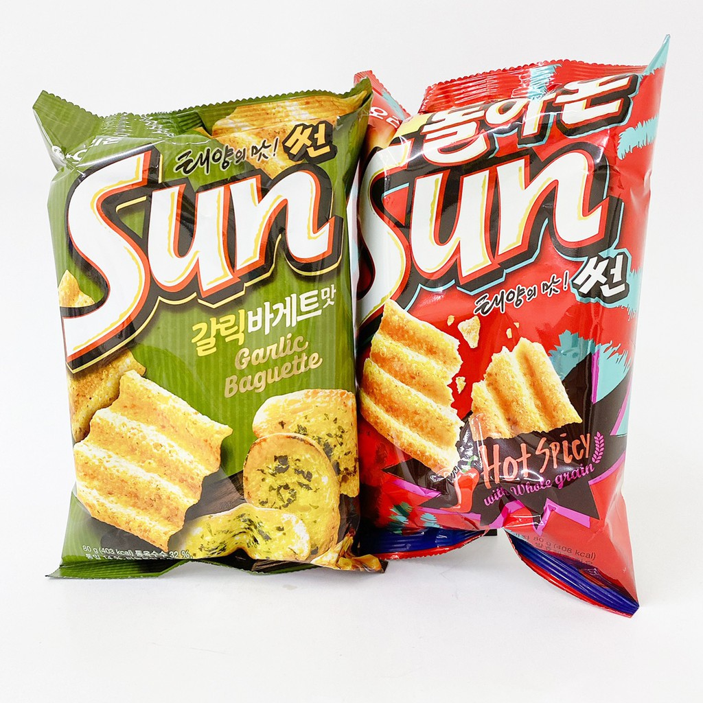 世界GO 韓國 好麗友 ORION SUN 陽光波浪脆片 玉米脆餅 波浪玉米脆片 辣味 大蒜麵包 80g