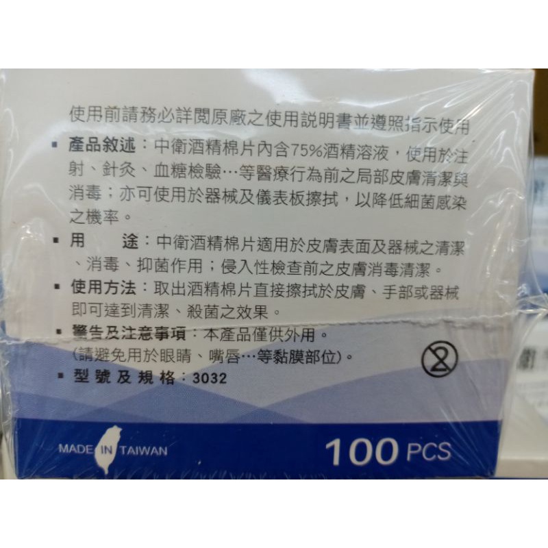 中衛酒精棉片100、200PS/盒 《消毒殺菌》