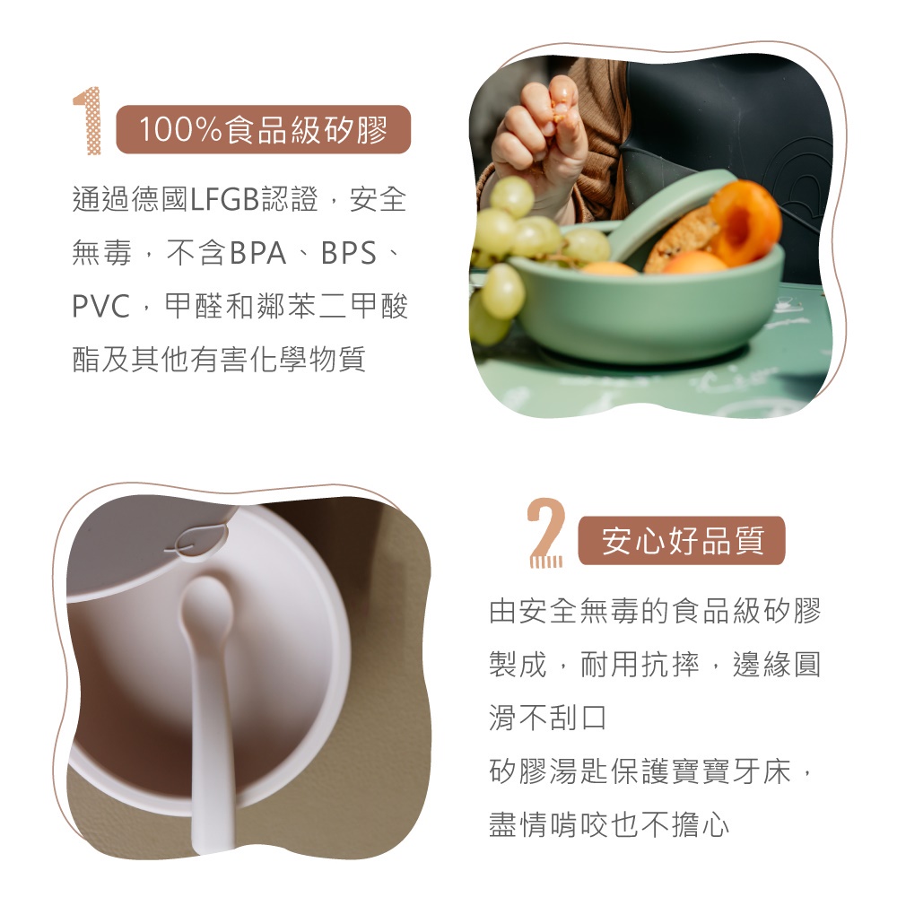丹麥 By Lille Vilde 防滑矽膠吸盤碗+湯匙 學習餐具