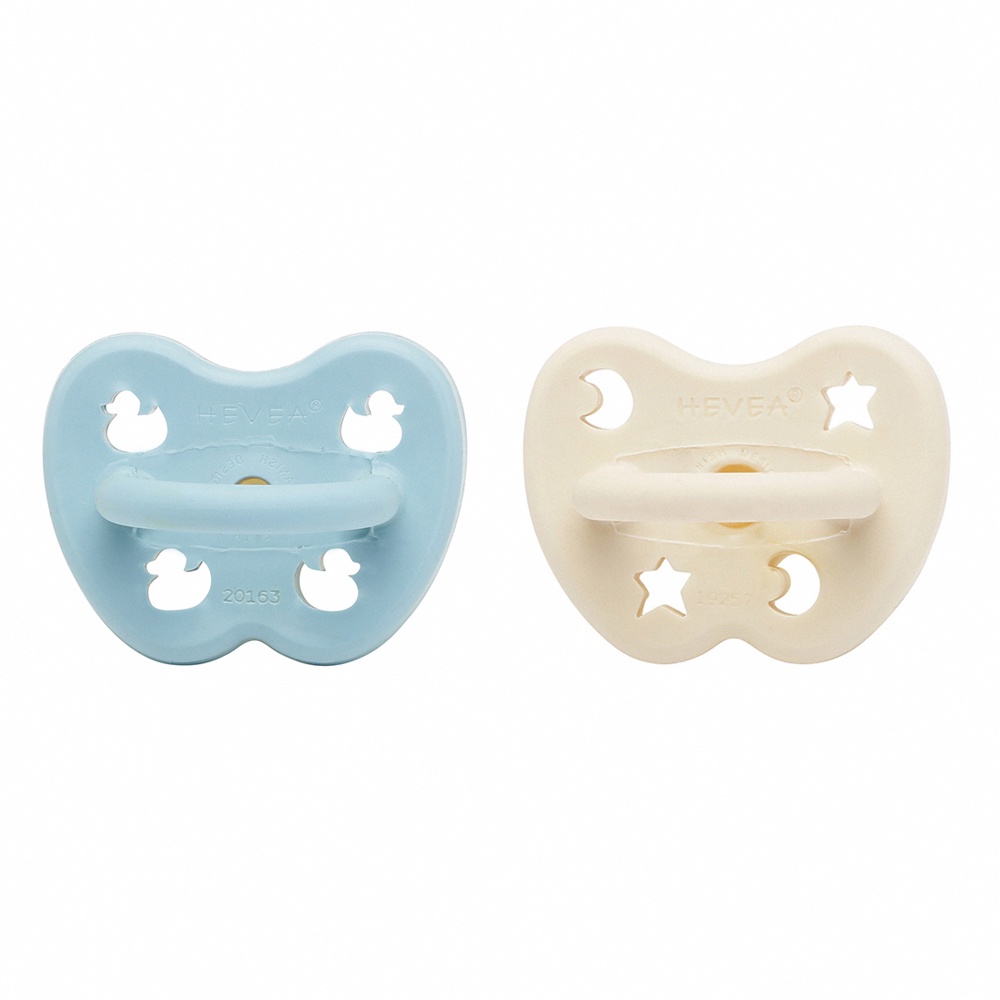 丹麥HEVEA彩色乳膠奶嘴2入組 - 寶貝藍&牛奶白 | 0-3個月