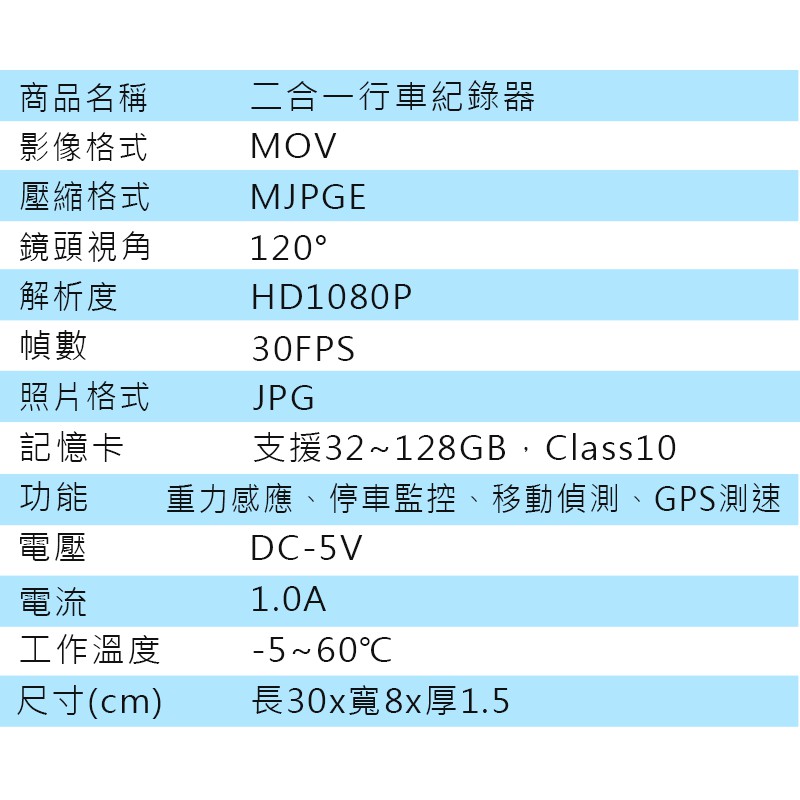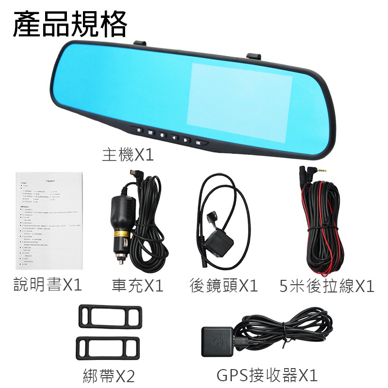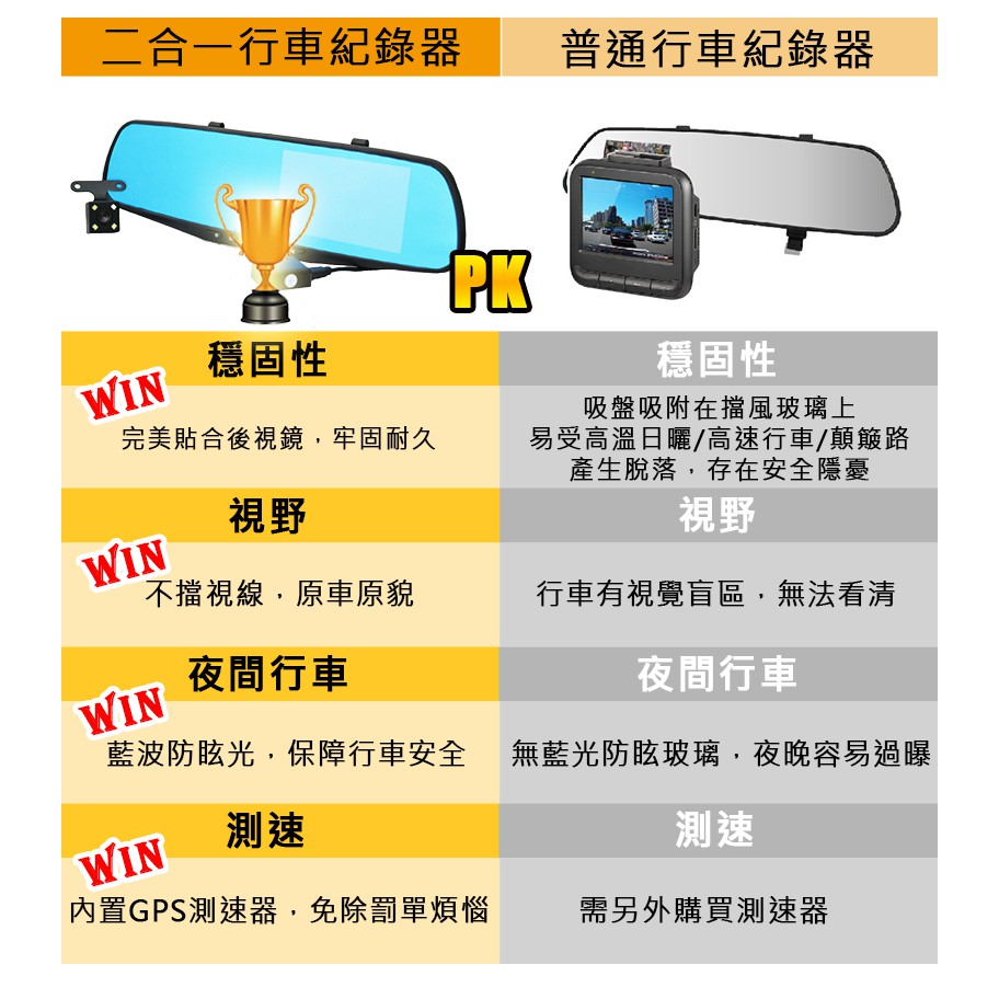 二合一後視鏡行車紀錄器-前後鏡頭雙錄1080P/倒車顯影/停車監控/移動偵測/關鍵鎖檔
