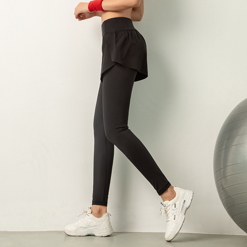 二合一瑜伽褲女士高腰提臀緊身小腳健身褲跑步彈力運動長褲