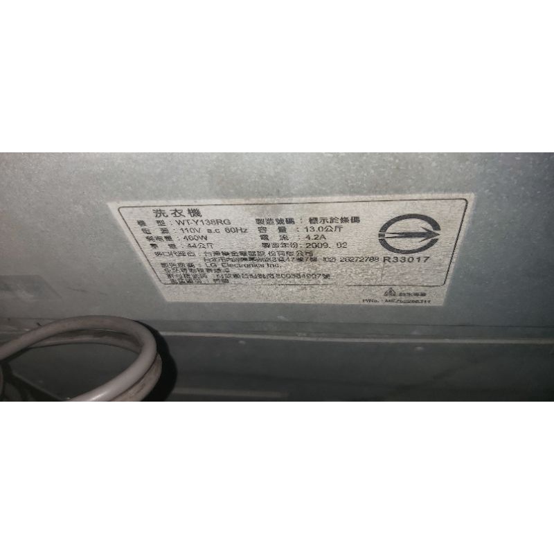 二手中古樂金LG13公斤變頻洗衣機,型號WT-Y138RG,不保固便宜賣,請詢問大戶藥師