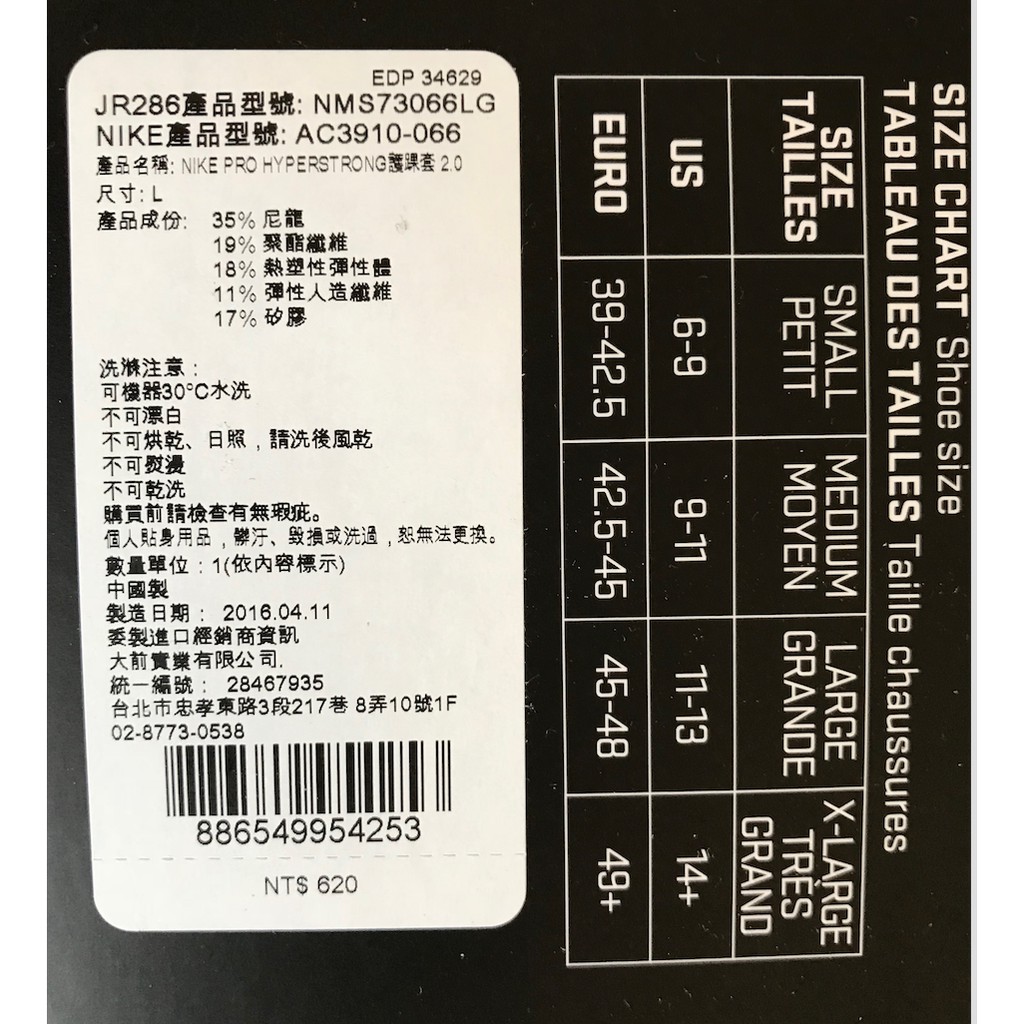二手 NIKE PRO 第二代黑色護踝套 運動護具 (L size 型號AC3910-066 原價: 620NT)