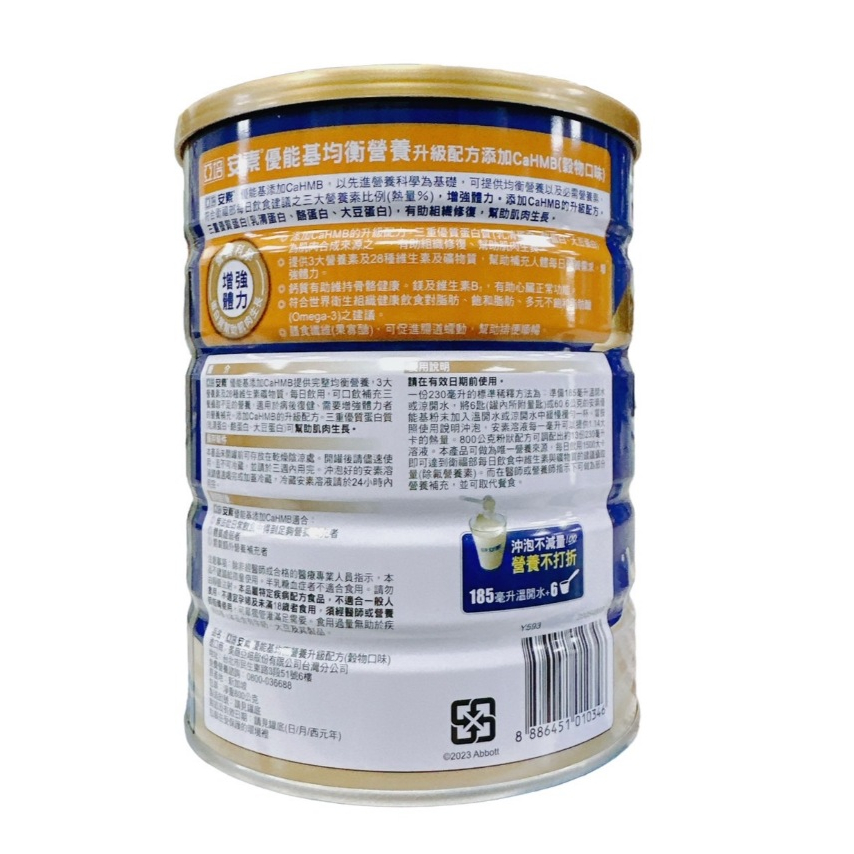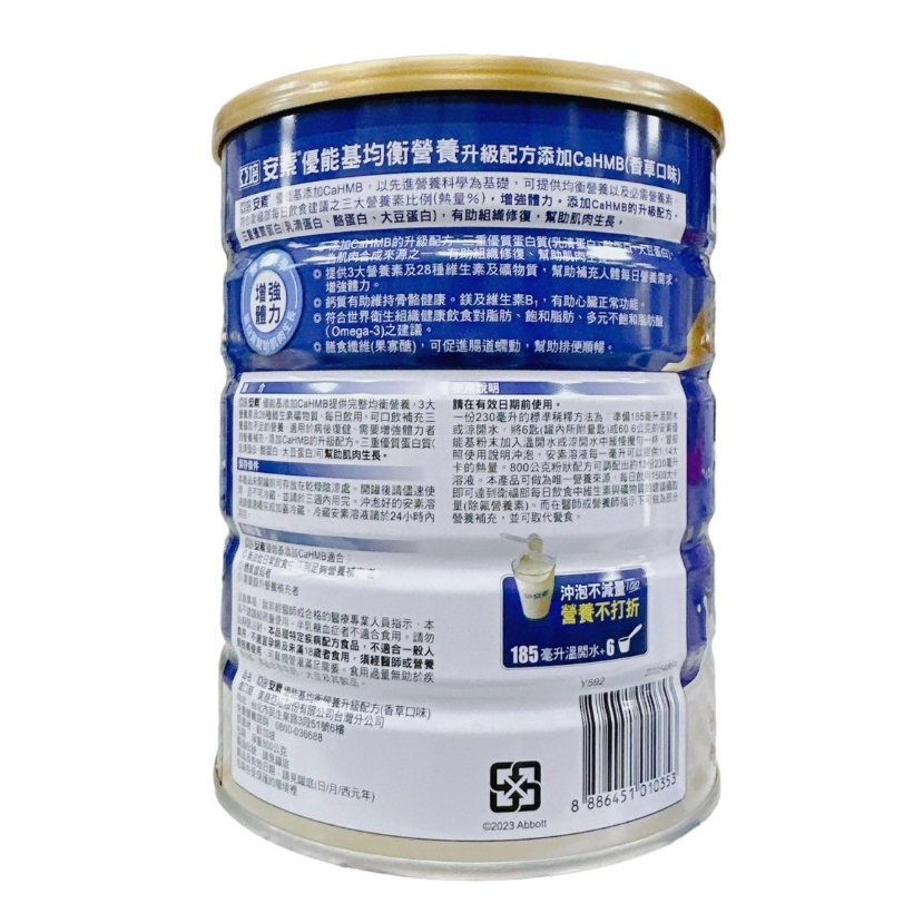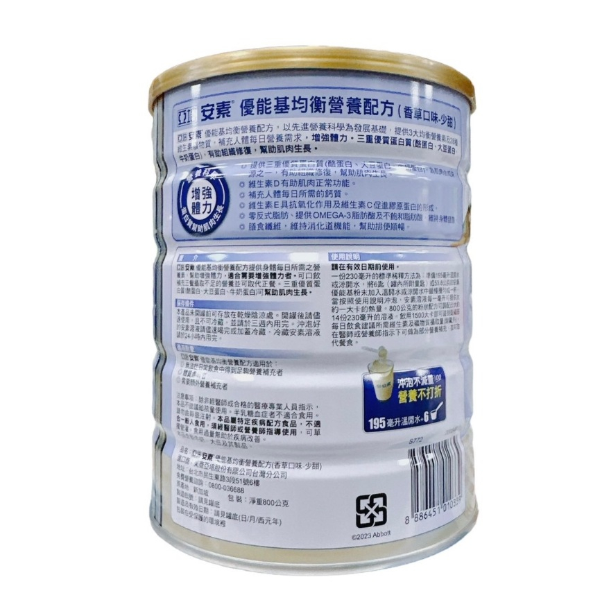 亞培 安素優能基 安素優能基均衡營養配方 800g/罐【仁仁藥局】香草口味/香草少甜/穀物