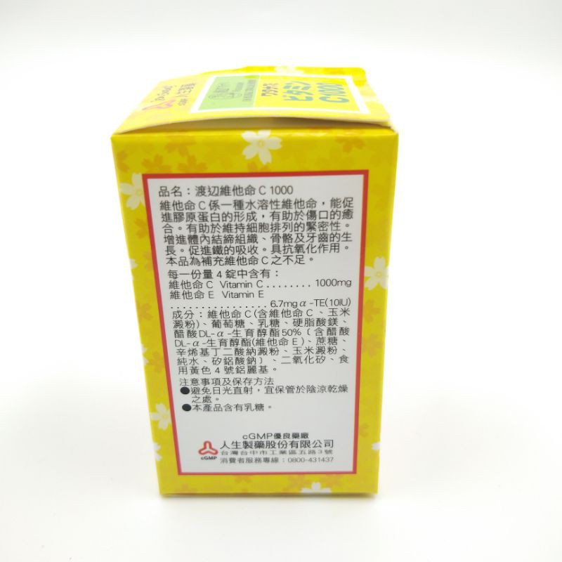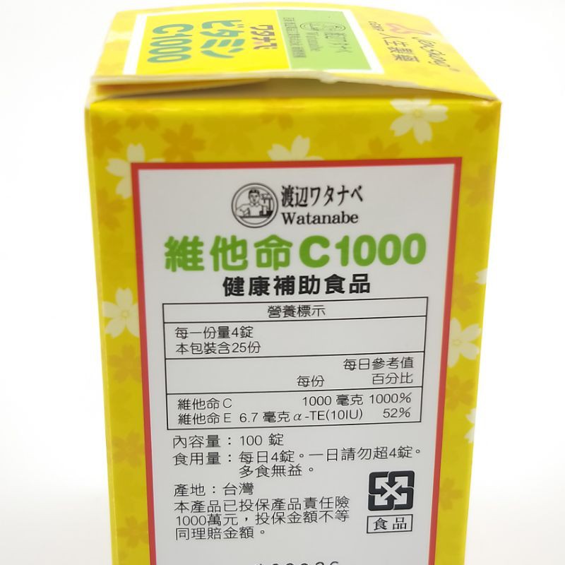 滿額免運 人生渡邊 維他命C1000 100錠/罐 現貨效期:2026/12人生製藥