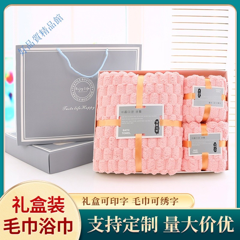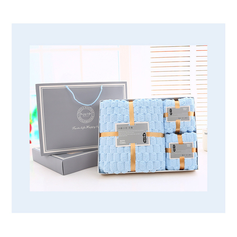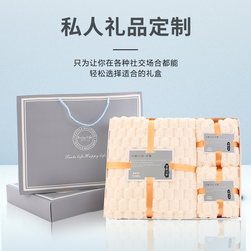 今年新款 情侶定製不掉毛柔軟雲朵格毛巾三件套高檔禮盒裝公司福利年會禮品