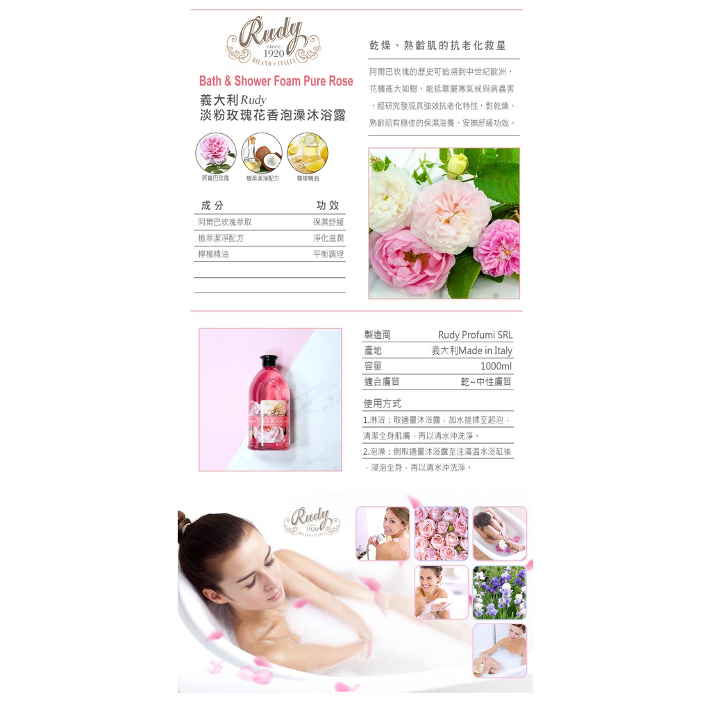 任選1瓶$299義大利Rudy泡澡沐浴露1000ml-鳶尾花香/玫瑰花香