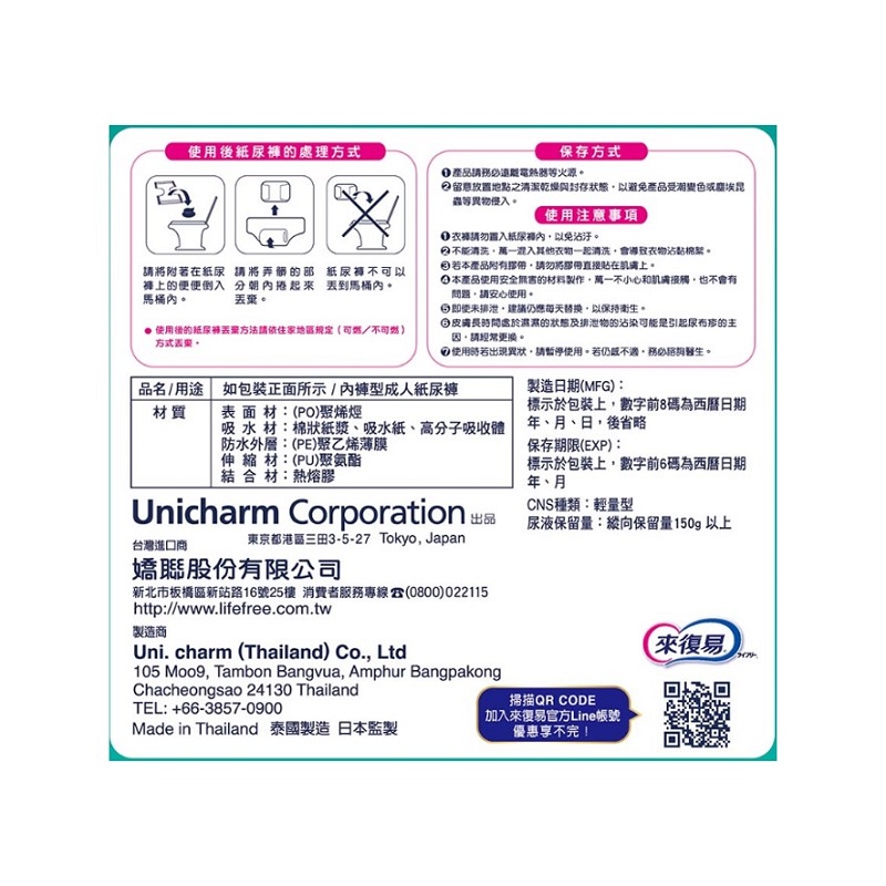 來復易輕薄安心活力褲中號18PC片 x 1 【家樂福】
