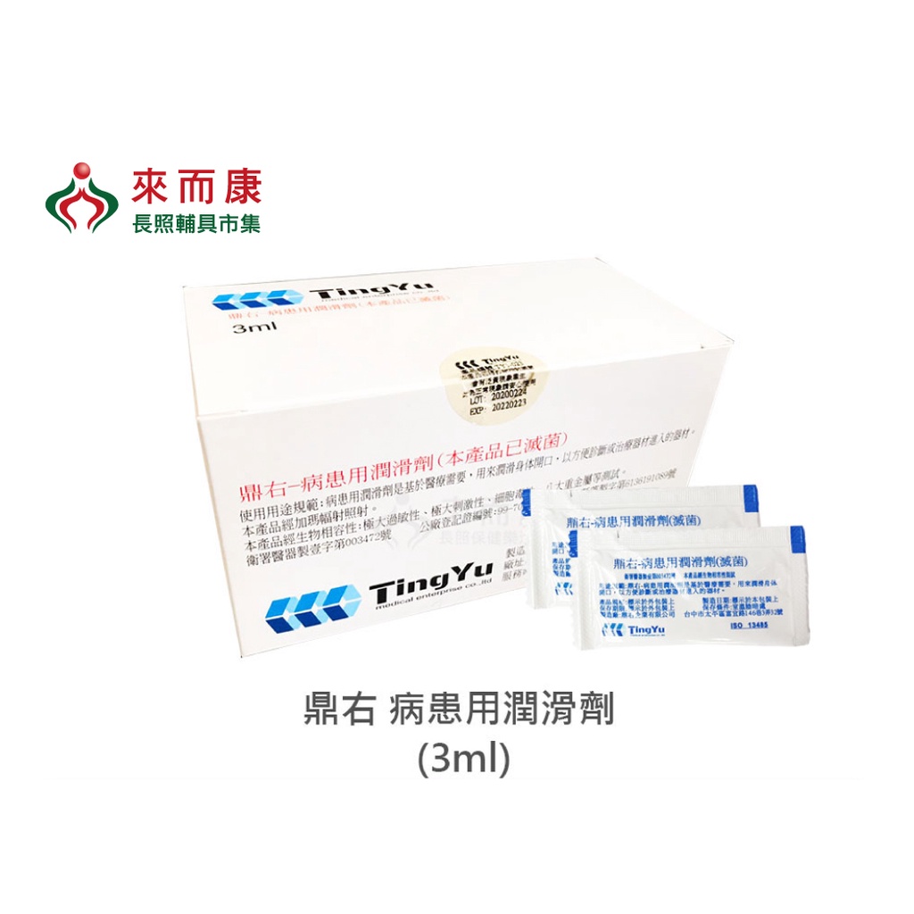 來而康 鼎右 病患用潤滑劑(滅菌) 3ml 隨身包 100包/盒販售 滅菌 醫用 病患用 潤滑劑 潤滑液